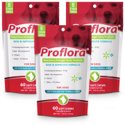 Have used 15 months on 47# Brittany after diagnosed with C. Diff and put on Fortiflora (ick). After infection resolved, i decided to keep him on a probiotic for his frequently sensitive GI tract. Has had NO loose stools all this time. New adoptee, English Setter-also on it for a month....excellent stools - no tummy upsets. Came to us on yucky food with soft stools-changed to Wellness and proflora and she's doing terrific!