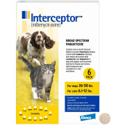 Interceptor for Dogs 26-50 lbs. | Cats 6.1-12 lbs. | Prevention for Heartworm + Other Worms | 6 Tablets, 6-Month Supply
