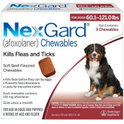 NexGard Chewables for Dogs - afoxolaner - 60.1-121 lbs (3 chews) - [Flea & Ticks]